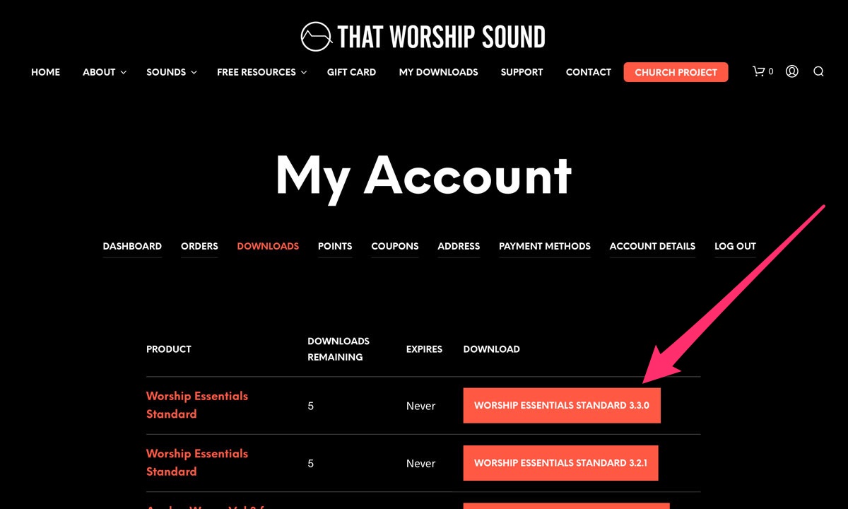 - Access your downloads by logging into your account at https://thatworshipsound.com/my-account/downloads/